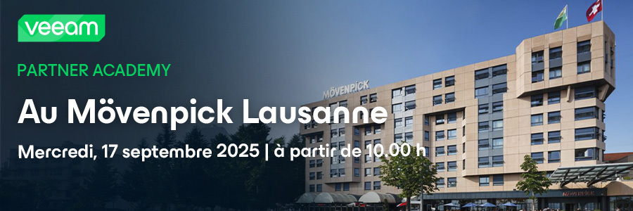 C’est avec grand plaisir que nous vous invitons à la prochaine ALSO Veeam Partner Academy, qui se tiendra à nouveau à l’hôtel Mövenpick à Lausanne.